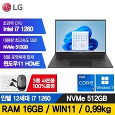 LG전자 그램 15인치 16인치 17인치 512GB RAM16G 정품윈도우포함 노트북, 블랙, 14인치, i7, 16GB, WIN11 Home