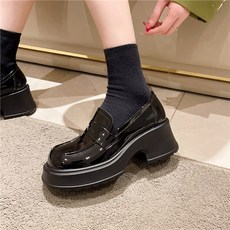 메르나뛰 통굽 키높이 스퀘어코 가보시 발편한 청키힐 에나멜 여성 로퍼 ME698-1