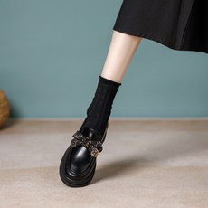 ANYOU 6cm 두께 블랙 구두 여성용 로퍼 신발 리얼 가죽 가을 멀티 로퍼 단화