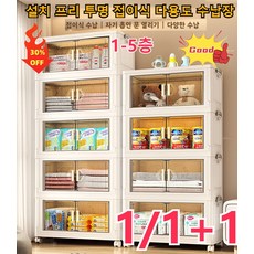 1/1+1 투명 접이식 수납장 대용량 레이어드 수납장 옷 수납장 다용도 방진 수납장 1-5층, S(너비 45cm), 1층