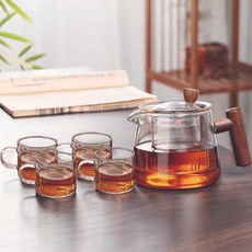 고온에 강한 샤랄라 티포트 가정용 다기 원터치 여과 찻잔 티포트분리유리 티포트 세트, 색깔2, 하나