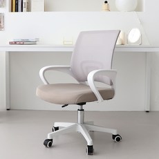 로고스토리 학생 컴퓨터 사무용 사무실의자 AIR-C 무헤드형, 화이트 + 샌드베이지