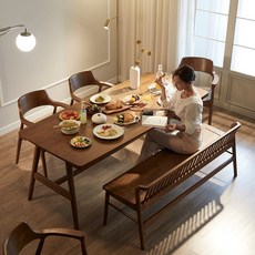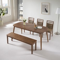 로드퍼니처 헤이미쉬 원목 식탁 + 일반의자 3p + 벤치의자 1p 세트 6인용 방문설치, 앤틱