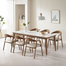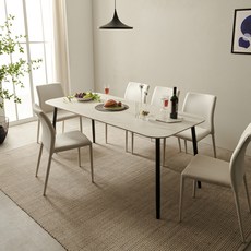 보니애가구 나탈리 포세린 세라믹 1800 식탁 + 의자 6p 세트 방문설치, 화이트