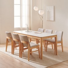 [삼익가구] 어썸 통세라믹 4인용/6인용 원목 식탁 풀세트, 02. 6인용 통세라믹 원목 식탁세트(의자6), 내추럴