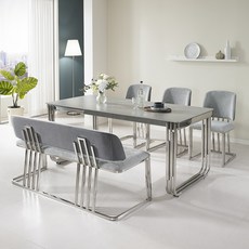 로드퍼니처 하프 1800 통세라믹 식탁 6인용 + 의자 3p + 벤치 방문설치, 그레이