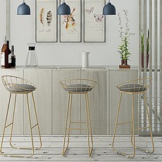 북유럽 스탠드바 아일랜드식탁 높은 홈바의자 85cm, 화이트쿠션, 1개