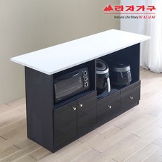 라자가구 위드 원스 1500 아일랜드 홈바 전자렌지대 cr059, 블랙_바디+화이트_상판
