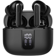 Fowod 블루투스 5.3이어폰 최신상 LED 배터리 잔량 표시 무선 블루투스 이어폰, 블랙