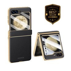 Hyang 갤럭시 Z플립5 풀커버 힌지보호 가죽 휴대폰 케이스