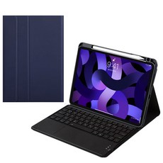 아이패드 애플펜슬 수납 led트랙패드 블루투스 키보드케이스, 네이비