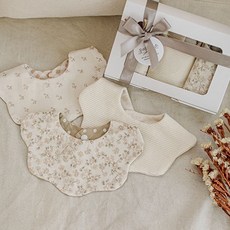 럭셔리베이비 6중 요루거즈 꽃 턱받이 D 4종 세트, 꽃D세트(컬러도트, 블랙체리, 하트곰, 숲속곰), 1세트