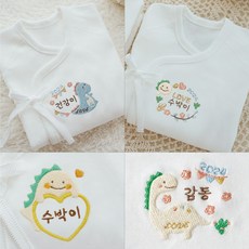 2024 용띠 태명 자수 각인 오가닉 배냇저고리(완제품) 세트1 주문맞춤제작 임신출산선물 유기농 인증 선물포장 만삭사진 베이비샤워 청룡