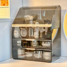 풀커버링 뚜껑있는 대용량 초대형 클래식 화장품 정리대, 링클, 1개