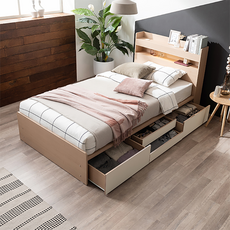 보루네오 루나Po LED 3서랍 수납 침대 슈퍼싱글 SS 양면 매트리스 세트, 내추럴오크