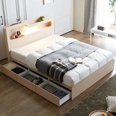 보루네오 침대 슈퍼싱글 퀸 무헤드 LED 수납형 서랍 평상형 호텔 신혼부부 세트 SS Q, 04_바울 수납침대, 내츄럴오크