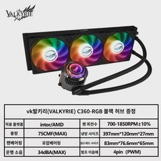 VK발키리 A360/E360/GL360/C360/C240 일체형 수냉식 CPU 쿨러 ARGB, 발키리 C360 블랙