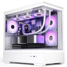컴퓨터케이스 전망뷰 측면 2색상 수냉식 미들타워 케이스 블랙 컴퓨터 미들 측면뷰 데스크탑, 화이트+발키리A360수냉+프리즘x6개입