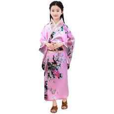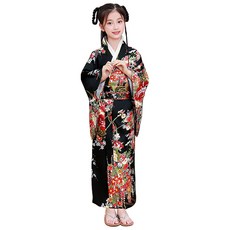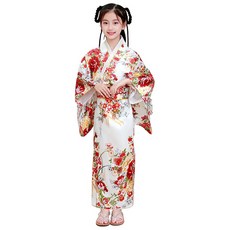 어린이 일본 전통 기모노 유카타 개량 의상 민속 한복 치마 드레스 롱 스커트 차이나 코스프레 자수 동양 플라워 T-1030