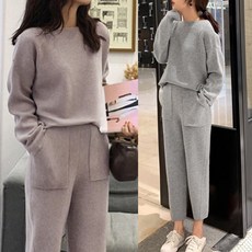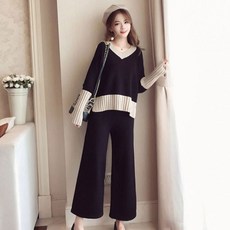 이노뱅크 배색라인 루즈핏 니트 상하의 세트 니트바지 투피스 ZHA095
