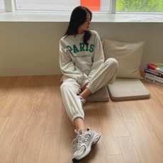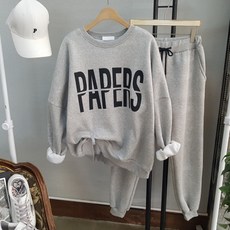 상상그이상 여성용 국내제작 레터링 기모 맨투맨 조거팬츠 투피스 2PCS 세트 데일리룩