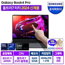 삼성전자 갤럭시북4 프로 NT960XGK-K71A 16인치 인텔 울트라7 영상편집 사무용 코딩용 대학생 고사양 120Hz 터치스크린 윈도우11 노트북, WIN11 Home, 32GB, 4TB, 문스톤 그레이