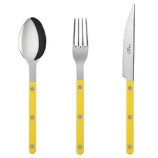 사브르 비스트로 샤이니 파스텔 디너 커트러리 3종 세트, 파스텔옐로우, 디너 스푼 + 디너 포크 + 디너 나이프, 1세트