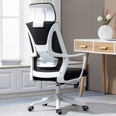 컴퓨터의자 메쉬의자 각도 조절 가능 사무실 책상 사무용의자 가정용 회전 승강 가능한 게이밍 의자 QXX, 화이트/블랙