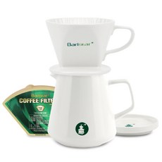 바리스타 자기 핸드드립 커피서버 600ml + 드리퍼 + 여과지 세트 BDN2, 혼합색상, 1세트