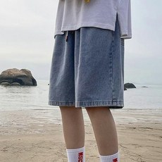 마켓A 남성용 밴딩 와이드 5부 청바지