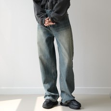 코디코치 구제 데님 청바지 세미 와이드 통 일자 롱 워싱 팬츠