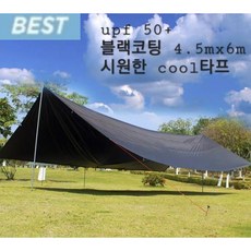 TANI 초대형 4.5M * 6M 블랙코팅 캠핑 렉타타프 암막 폴대6 팩 로프 풀세트, 검은색