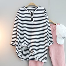 프라하단가라루즈핏티셔츠 빅사이즈 오버핏 롱티 라운드 데일리룩 스트라이프 루즈핏 체형커버 임부복
