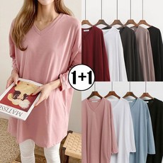 2장set 빅사이즈 롱 티셔츠 브이넥 절개 가오리 오버 핏 체형커버 코튼 tee 1+1 세트