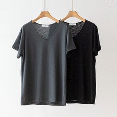 코코세븐 1+1 여성 빅사이즈 시원한 슬라브 브이넥 스판 이너 기본 반팔 티셔츠 66 77 88 99 100