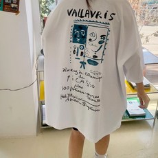 스타일아유 여성 여름 순면 프린트 레터링 루즈핏 반팔 티셔츠 빅사이즈 M~2XL 오버핏 반팔티 롱티 캐주얼 오버핏 자체제작[A3G3TS1694]