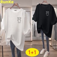 Runke 여성 빅사이즈 오버핏 반팔 롱박스 캐주얼 롱 여름 티셔츠 1+1