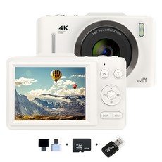 삼림늑대 2.4 inch 4800W 픽셀 여행용 셀피 디지털 카메라 4K HD 콤팩트 하이엔드 32G 메모리카드 + 카드 리더기, 화이트