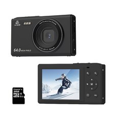 Songdian 4K 레트로 디지털 카메라 + 64GB 메모리 카드, DC202-AF (블랙)