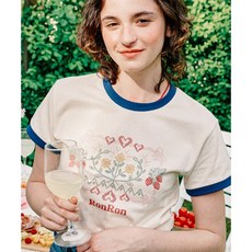 론론 여성 반팔 티셔츠 라즈베리 크림 블루 배색