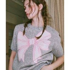 론론 RONRON RIBBON ITALY 코튼 면 SHORT 니트 라이트 그레이 체육대회 반티 단체티