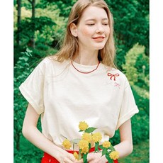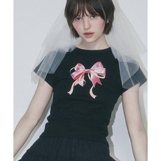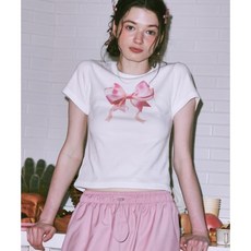론론 RONRON DOUBLE RIBBON SLIM CROP T SHIRT WHITE PINK RR23BST1930WP 290202