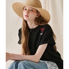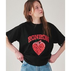 론론 RONRON STRAWBERRY RIBBON BASIC FIT T SHIRT BLACK RED