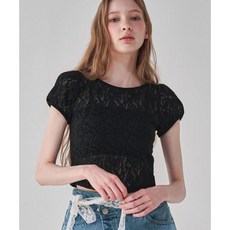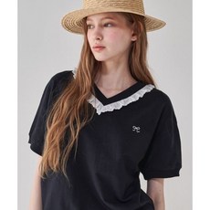 론론 RONRON FLOWER LACE SLIM T SHIRT 블랙