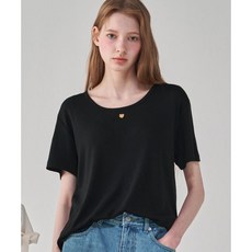 론론 RONRON HEART BASIC U NECK T SHIRT BLACK