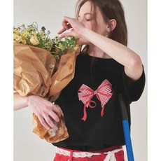 론론 GINGHAM DOUBLE RIBBON BASIC FIT T SHIRT BLACK RED