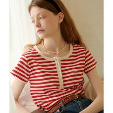 론론 여성 반팔 티셔츠 레드 스트라이프 줄무늬